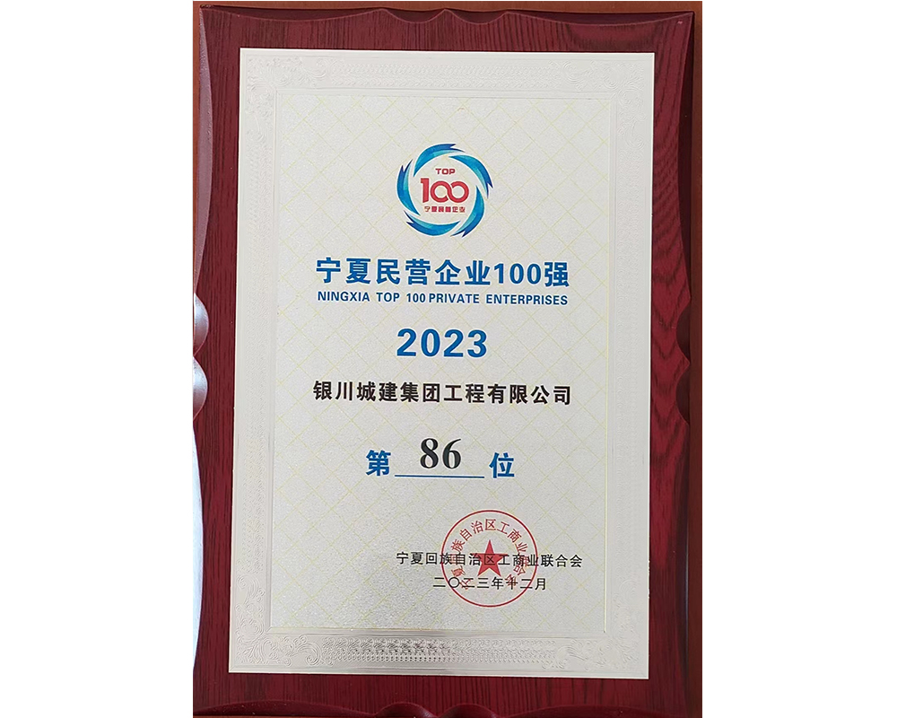 銀川城建集團(tuán)工程有限公司榮獲2023寧夏民營(yíng)企業(yè)100強(qiáng)