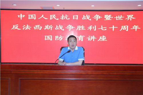 8月1日,為紀(jì)念中國(guó)人民抗日戰(zhàn)爭(zhēng)勝利暨世界反法西斯戰(zhàn)爭(zhēng)勝利70周年,增強(qiáng)員工國(guó)防意識(shí),集團(tuán)公司邀請(qǐng)?jiān)瓕幭能妳^(qū)政治部楊泉麓副主任,舉辦了軍事理論與國(guó)防教育講座。為集團(tuán)全體員工講解國(guó)防知識(shí)和國(guó)家安全形勢(shì),進(jìn)一步提升了員工的國(guó)防知識(shí)水平,弘揚(yáng)了愛(ài)國(guó)主義精神。